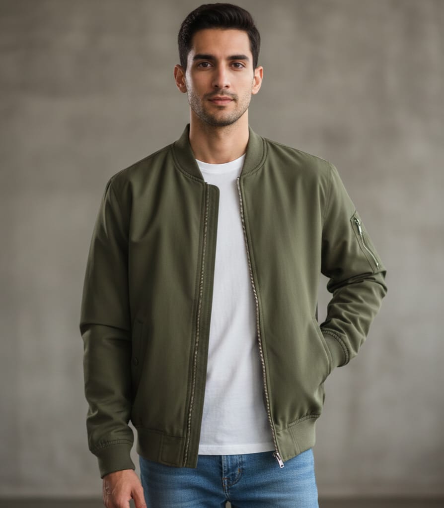A lightweight windproof bomber jacket designed for everyday comfort and practical wear. The smooth outer fabric helps block cool air while remaining breathable for regular use. Ribbed collar, cuffs and hem provide a secure fit, and the front zipper closure with side pockets adds convenience for daily activities. Suitable for travel, evening outings and daily casual wear, this jacket pairs easily with basic outfits to create a clean and functional style.