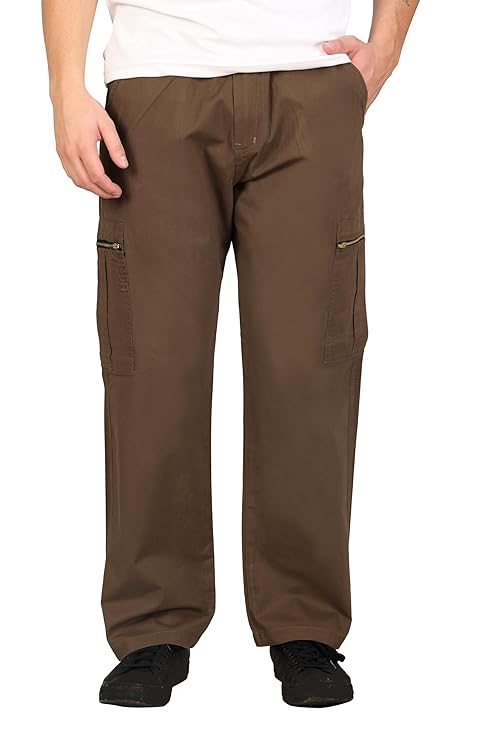 Stay comfortable and stylish with these brown straight fit cargo trousers. Designed with functional zip pockets and a clean structured look, they offer both utility and everyday comfort. The relaxed straight silhouette makes them ideal for casual wear, travel, and daily use while maintaining a smart, modern appearance.