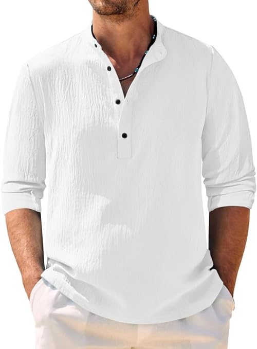 Clean solid casual shirt with mandarin collar giving elegant modern appearance, comfortable to wear with jeans and trousers for daily wear, outings, travel and casual meetups, soft breathable fabric provides relaxed comfort and lightweight feel suitable for regular use in all seasons.