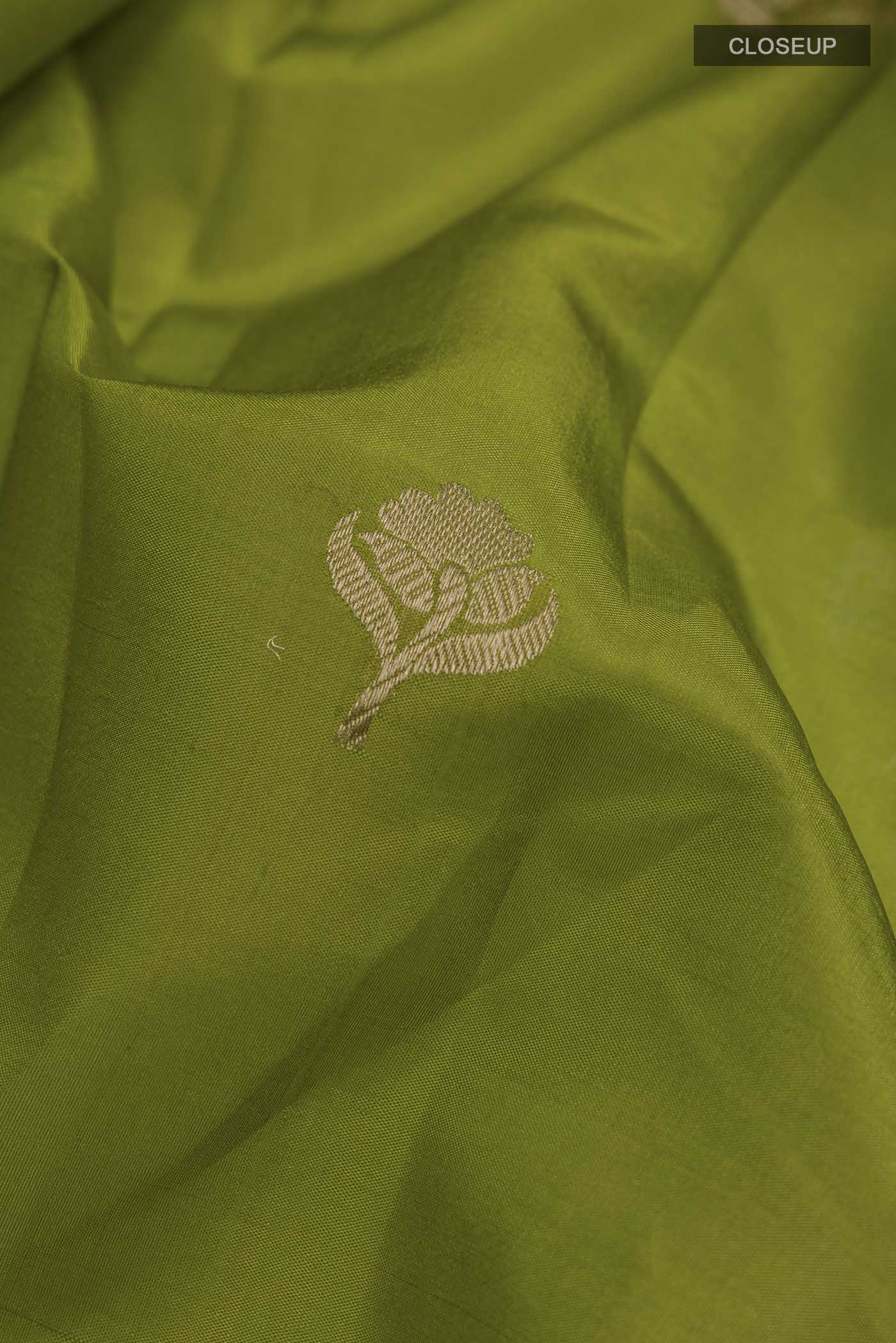 Green Banarasi Katan Silk Saree with Zari Butta on the body and Zari Border. Includes unstitched blouse.