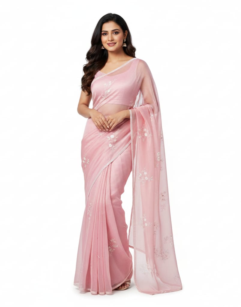 Beautiful lightweight organza saree with a soft graceful fall. Ideal for festive occasions and functions, giving a classy and elegant appearance.