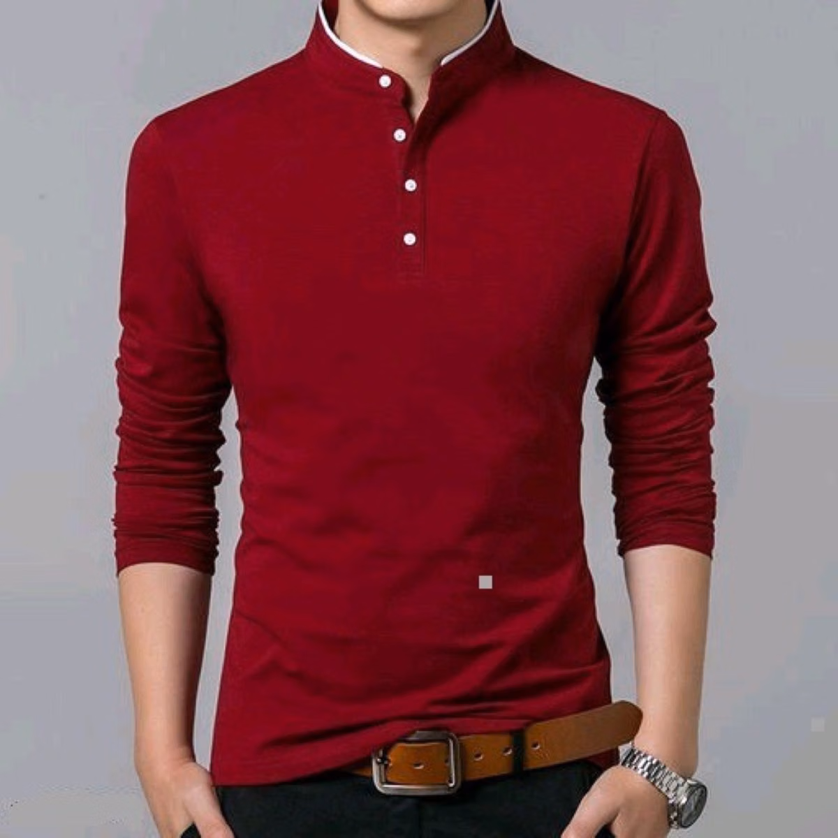 This t-shirt features a classy maroon solid color with a stylish henley button neck that gives a smart and premium casual look. The minimal design makes it versatile and easy to style, suitable for both casual and semi-casual outfits. The full sleeves enhance the overall appearance and make it perfect for a clean, confident everyday style.