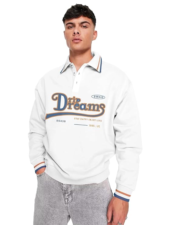 Trendy men’s casual sweatshirt designed with a clean base and bold front typography print that gives a youthful streetwear vibe. The contrast tipped collar and sleeve cuffs enhance the overall look while the soft breathable fabric keeps you comfortable for long hours. Perfect for everyday wear, outings or casual gatherings, this piece pairs easily with jeans or joggers for a relaxed smart appearance.