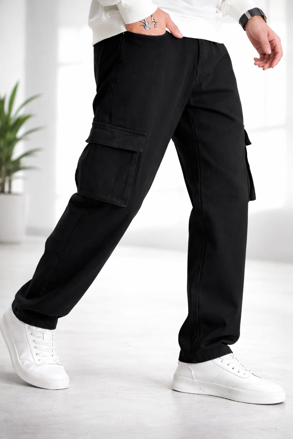 Multiple functional cargo pockets add both fashion appeal and real practicality, allowing you to carry essentials like phone, wallet, and keys comfortably without bulk. Reinforced stitching across stress points enhances longevity, while the smooth matte-black finish keeps the look minimal and premium. The fabric holds its shape and color even after repeated washes, resisting fading and sagging.