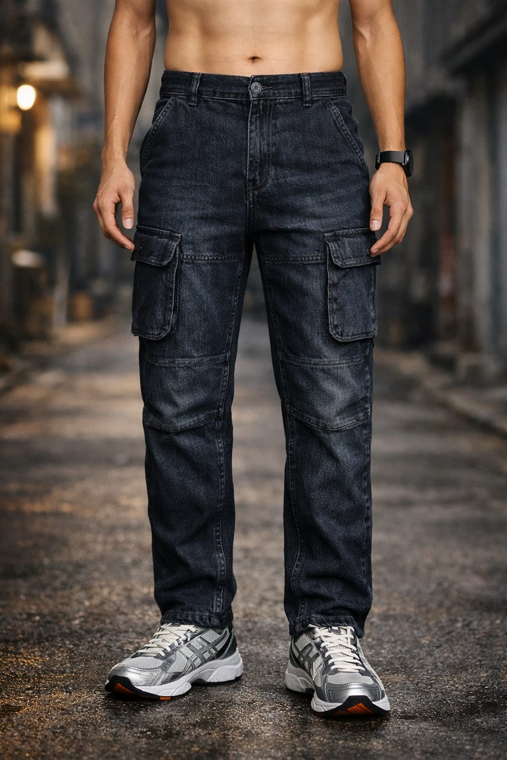 A heavy utility cargo denim jeans built for durable daily use. The strong denim material offers long lasting wear while the multiple side pockets provide extra storage convenience. The structured fit supports comfortable movement throughout the day. Suitable for travel, outdoor activities and regular casual wear, this jeans pairs easily with t-shirts, jackets and sneakers for a rugged modern appearance.
