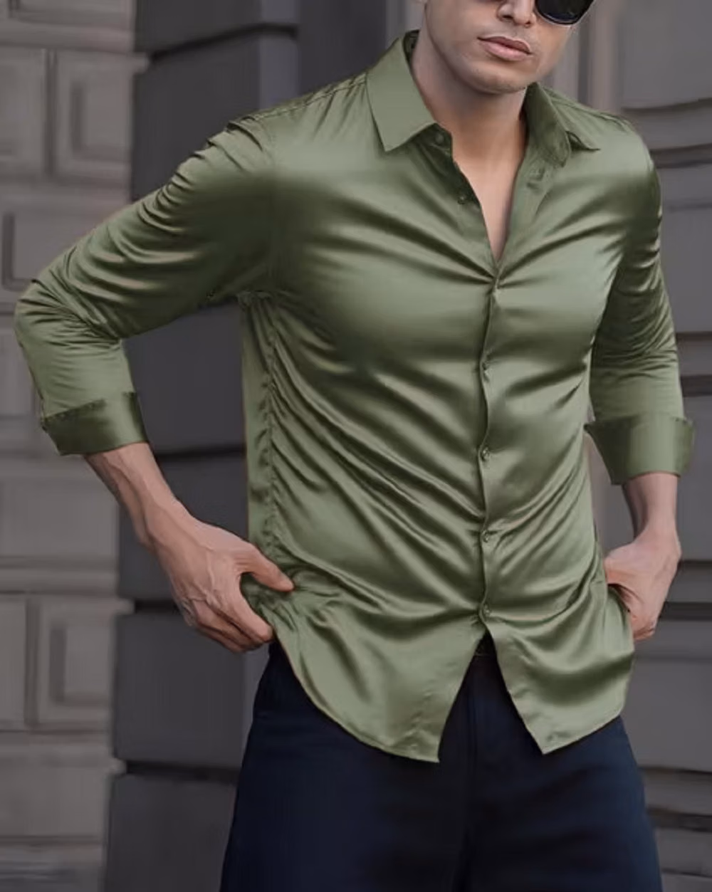 This shirt features a subtle olive green tone that gives a fresh and modern look. The clean solid style keeps it minimal yet stylish, making it easy to pair for a smart casual outfit. It feels comfortable on the body with a relaxed fit, perfect for everyday wear, casual outings, or a polished laid-back appearance.